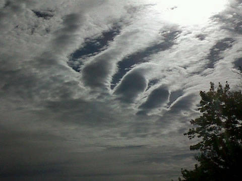 Then I looked out over the lake, and up into the sky. The cloud formations (Doug would know what kind) were striking. They looked to me just like a hand reaching out to, or over me, in what felt like sort of a protective or loving way.