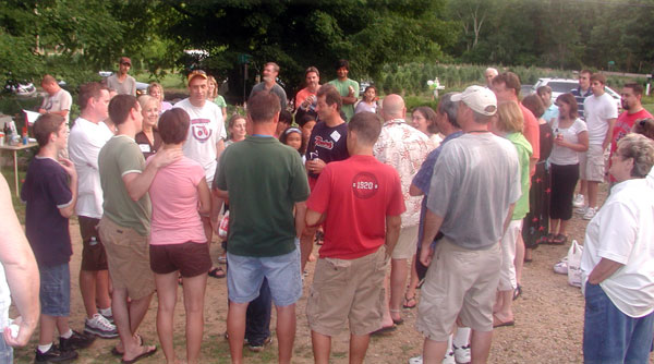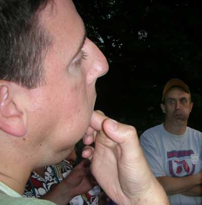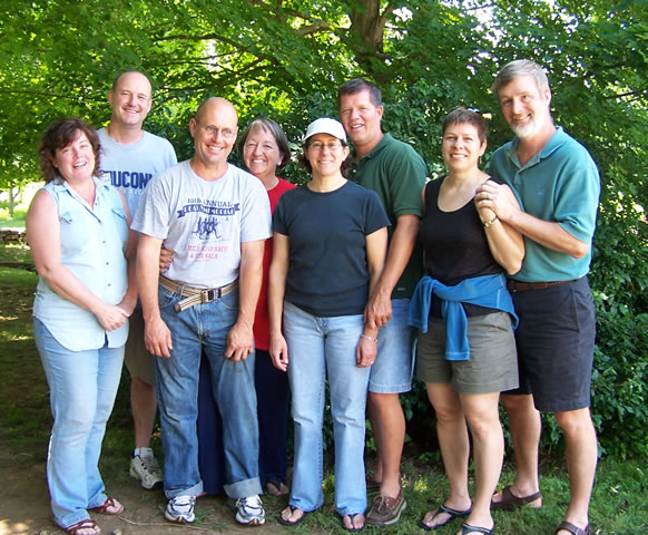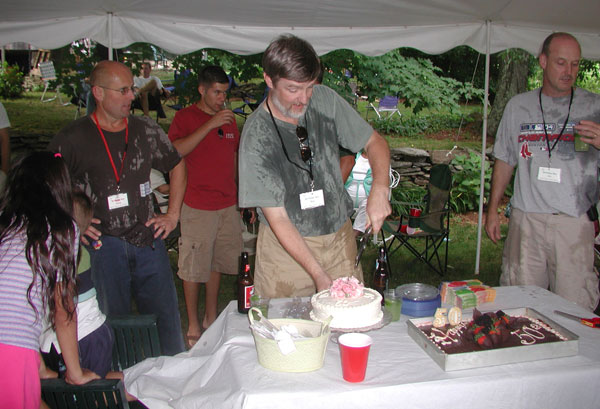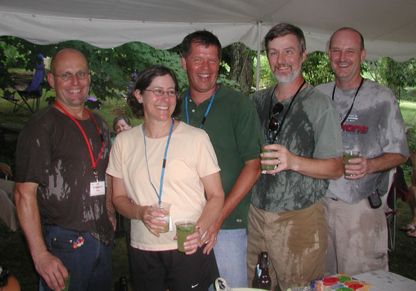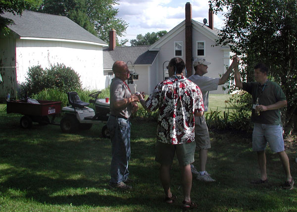 Doug demanded that we play it at Doug, Stu, Ronnie, Freddie and Barb's 50th Birthday Bash in 2007. Keith (green shirt above) was the champion of this event. Photos of happier days below. See summary of party mayhem.
